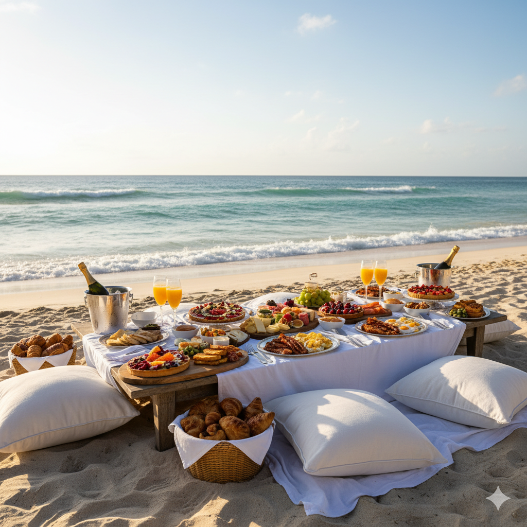 Our all-inclusive beach experiences are crafted specifically for short-term rentals, blending tropical-chic vibes with relaxed bohemian lux charm to create unforgettable guest moments. From curated beach bunches and artfully styled picnic setups to convenient picnic-to-go baskets, every offering is fully customizable to match your property’s aesthetic and your guests’ preferences.